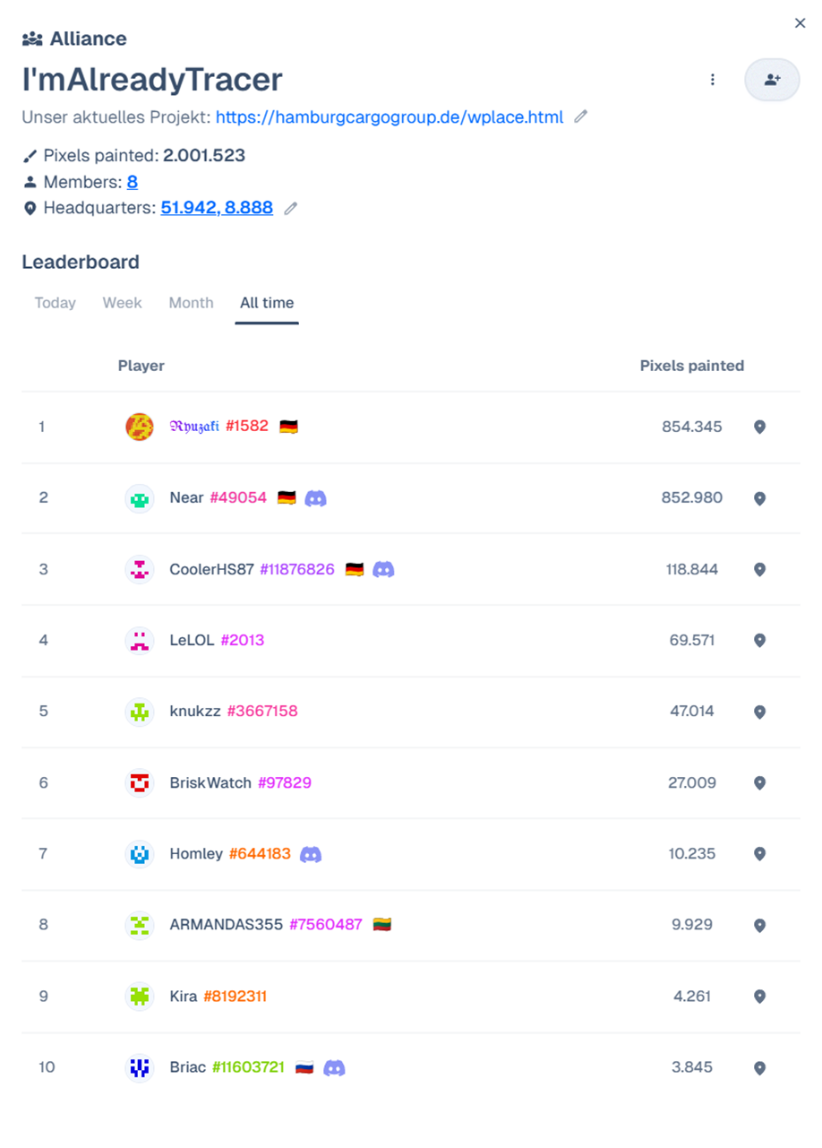 Seit einigen Tagen gibt es offizielle Events auf Wplace, die von den Webseiten-Admins ausgerufen werden.